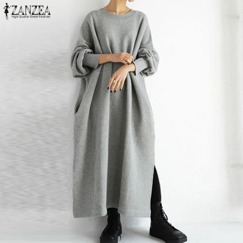 Best Dress from YOINSFLAG Apparel Store for Sweatshirt Dress Split Hem Long-Sleeve ZANZEA 5XL Winter Casual Autumn Loose Solid Pullover